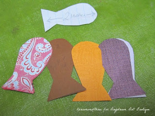 fish. Trace your fish shape onto your paper, cut two shapes for one fish. I cut out 4 fish for the game, so 8
